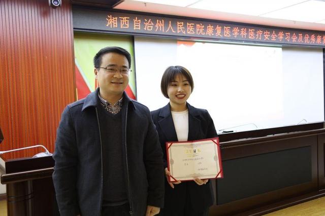 周丽华以《一例脊髓损伤患者康复护理个案汇报》获得二等奖,护理部专家为其颁奖。